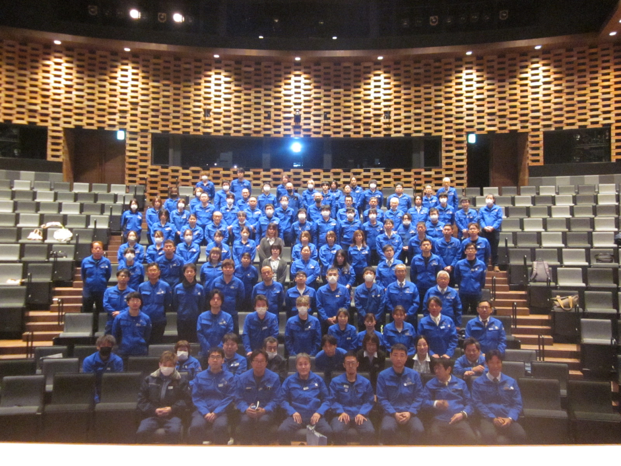 2026年4月2日(木)枚方市文化芸術センターにおいて「2026年度方針発表会」を開催しました。永年勤続表彰や昇進者の紹介、その後2026年度の各種方針について社長をはじめ各部門より発表が行われました。発表の途中においては、当社顧問弁護士の生沼寿彦先生よりコンプライアンス・ハラスメント研修を実施いただき有意義な時間を過ごすことが出来ました。最後に全体の集合社員を撮り、和やかな雰囲気で閉会しました。